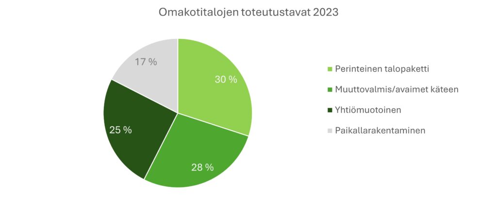 Suomalainen omakotirakentaminen on jo pitkään perustunut erilaajuisiin talopaketteihin. Ns. paikallarakentamisen osuus on laskenut, mutta perinteisten talopakettien ja muuttovalmiiden/avaimet käteen -toimitusten yhteenlaskettu osuus on noussut koko 2000-luvun ajan. Myös yhtiömuotoinen rakentaminen on yleistynyt.